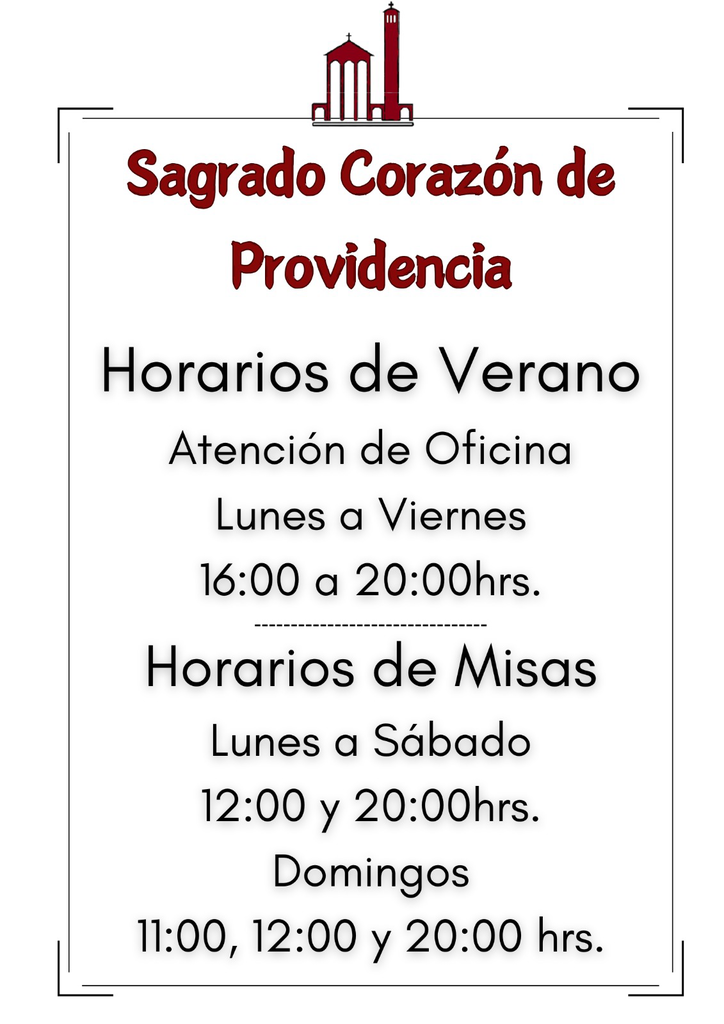 Los Horarios antes señalados son de atención de oficina parroquial.
